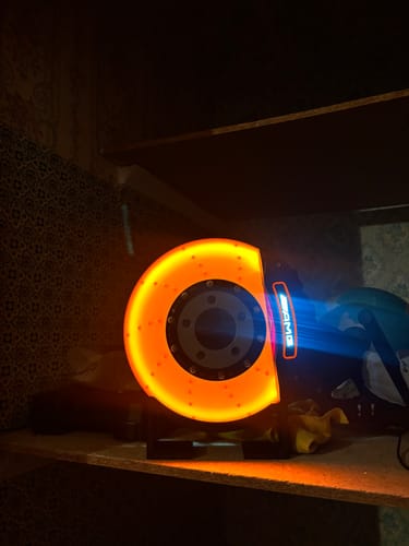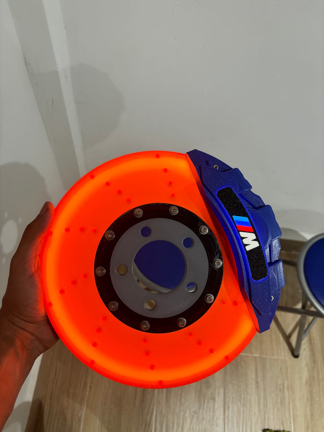 The lamp is built with a premium brake disc structure using durable ABS plastic and metal details, designed to replicate the look of a real performance brake.